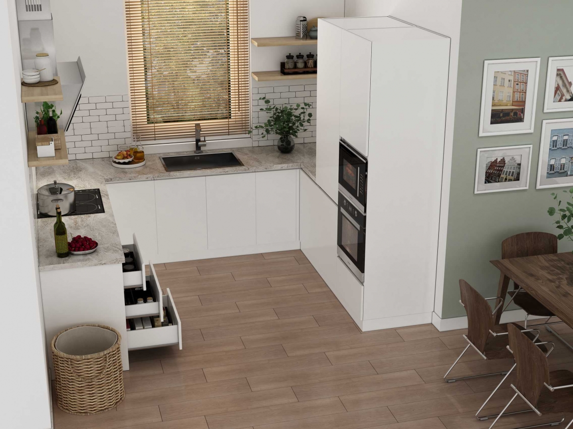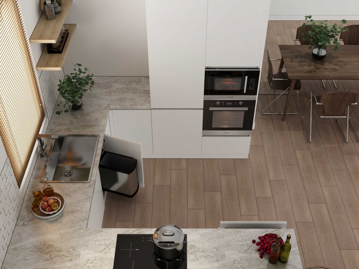 Mẫu tủ bếp hiện đại sử dụng ván gỗ công nghiệp mang thương hiệu An Cường. Sản phẩm được sản xuất trực tiếp tại nhà máy chế biến gỗ An Cường trên công nghệ CabinetPro.